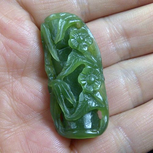 和田碧玉的顏色呈菠菜綠,光下不透,細看里面有自然形成的條紋,里面有黑點,精光內(nèi)斂,拿在手中盤摸一會,會感到有油的質(zhì)感。而顏色非常碧綠,光下看很通透,有條紋,有色差,無黑點的則大多是青海玉或俄玉。和田碧玉油潤、厚重,多數(shù)有黑點,俄碧性干、顏色漂亮,多數(shù)有糖。
